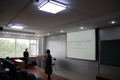 讲座中,Hunston教授从研究和教学过程中发现的问题入手,细致地讲解型式语法(pattern grammar)的相关问题,包括型式与意义的关联、以及型式语法与构式语法、框架语义学和英语动词的型式词典(Pattern-based Dictionary of English Verbs)之间的差异与相似之处,进行了深入浅出的阐述。我院硕士生、博士生、老师以及北京高校的语料库语言学研究者积极参与了此次讲学活动,并积极提问,收获良多。在接下来的讲学活动中,Hunston教授还将对局部语法、学术话语中的评价、评价型式、新闻中的科学报道、学习者语言等方面进行详细的讲解。