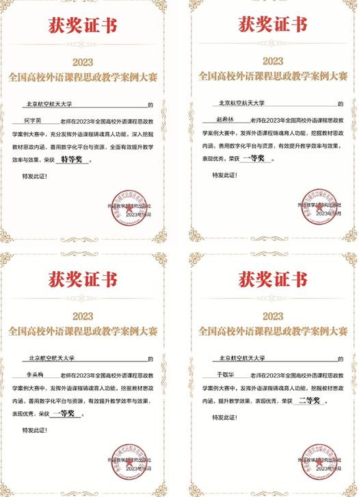 在刚刚结束的2023年全国高校外语课程思政教学案例大赛中,我校365英国上市公司大学英语教学部教师何宇茵获得特等奖,李英梅、赵希林获得一等奖,于敬华获得二等奖。