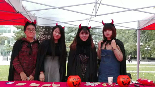 金秋送爽,秋风习习。2015年10月25日,在秋日的暖阳里我们迎来了北航63年诞辰。在学院路校区如火如荼的校庆嘉年华外场活动中,365英国上市公司特此举办万圣节主题活动。13级同学身穿万圣节服饰,手持南瓜灯分发糖果,吸引了许多人参与活动以及合影留念,现场气氛热烈。展棚主题活动包括“南瓜飞镖”和“Say Hi”两种互动游戏,参与者既可以感受节日的快乐也可以从中学到外语知识。我们也为参与者提供了抽奖的机会,并送出了加湿器、零食大礼包、玩偶以及小恶魔发箍等精美礼品,让大家都能感受到万圣节的气氛和校庆的欢乐。