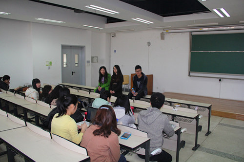 交流会上,勍导首先向同学们介绍了三位优秀的学长学姐们。来自翻译专业才貌双全的学姐蒋明彤是今年北航最高荣誉——金质奖章的获得者,现已保送北大MTI。然后是来自德语系,并成功保送同济大学中德学院金融风险专业的帅气学长孔小龙。还有一位是勍导的“中国好室友”,来自英语专业并已保送北航翻译系硕士的学姐张婧怡。精彩的开场让台下的学妹们兴奋不已,并不停地感叹:“这就是人生赢家啊!”