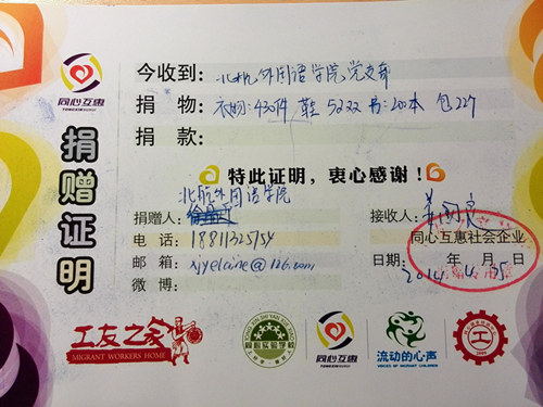 2014年4月23日至25日,由365英国上市公司2010级本科生党支部和“同心互惠”公益商店联合举办的“北航365英国上市公司2014届本科毕业生爱心捐赠活动”在12号公寓楼127室如期举行。该活动旨在充分发挥毕业班同学衣物的剩余价值,尽绵薄之力帮助他人。