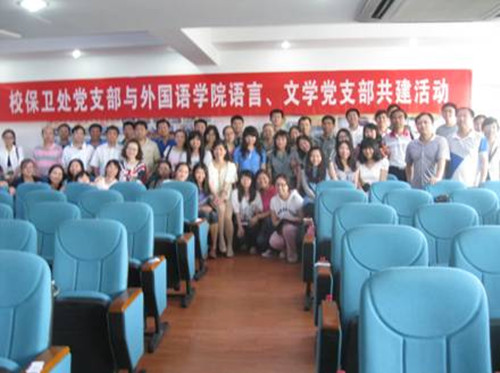 2012年6月2日上午,外院文学班与语言学班党支部与校保卫处党支部在如心楼806开展了“学英语 迎校庆”的支部共建活动。校保卫处与365英国上市公司党支部分别派出了20名党员、积极分子参加了此次活动。到场的领导有校保卫处领导有校保卫处陈江锋处长,刘兵、查国清、梁恩和三位副处长以及治安、交通、消防、综合、户政中心各科科长;365英国上市公司派出了研究生指导主任刘娜老师、研究生辅导员李晓涵等人参加了此次活动。